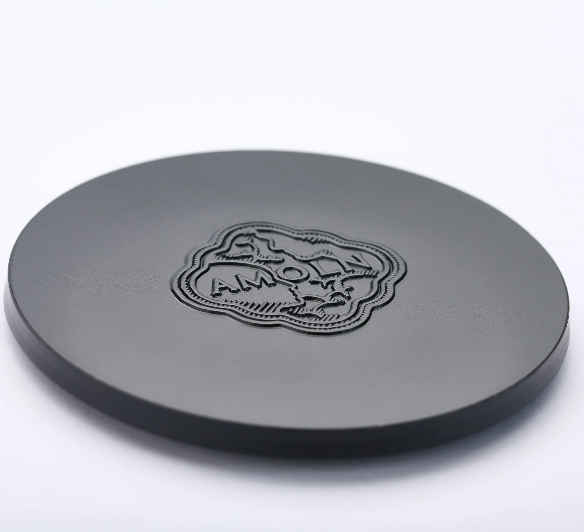 Det solide metalllokket beskytter Amolns monokromatiske blå lys og bevarer duften. Hvert lokk er håndlaget og har Amolns pregede logo, noe som gjør det unikt.