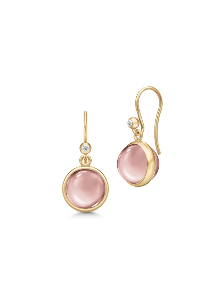 Beskrivelse Julie Sandlau's ikoniske Prime øredobber er preget av en rund cabochon-kuttet krystall, innrammet av Julie Sandlau signaturgullbelte. Øredobben er håndlaget i 22 karat forgylt 925 sterling sølv og prydet med cubic zirconia. Disse hvite briljantskårne steinene skaper den perfekte kontrasten til varmen fra gullbelegget og de fargede krystallene. Den runde krystallen måler 10 mm i diameter. |