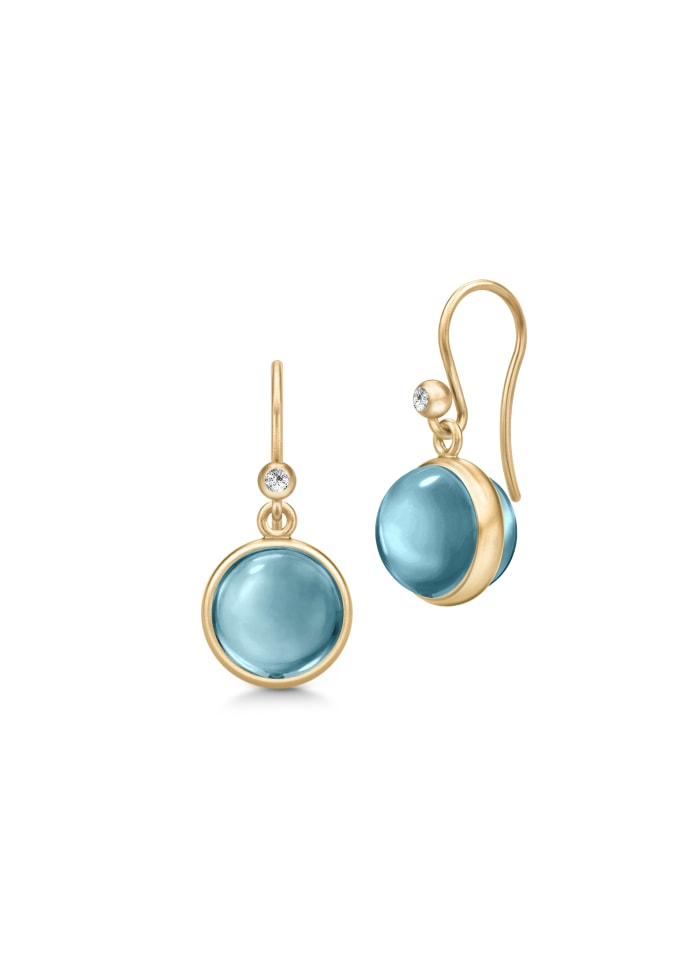 Beskrivelse Julie Sandlau's ikoniske Prime øredobber er preget av en rund cabochon-kuttet krystall, innrammet av Julie Sandlau signaturgullbelte. Øredobben er håndlaget i 22 karat forgylt 925 sterling sølv og prydet med cubic zirconia. Disse hvite briljantskårne steinene skaper den perfekte kontrasten til varmen fra gullbelegget og de fargede krystallene. Den runde krystallen måler 10 mm i diameter. |