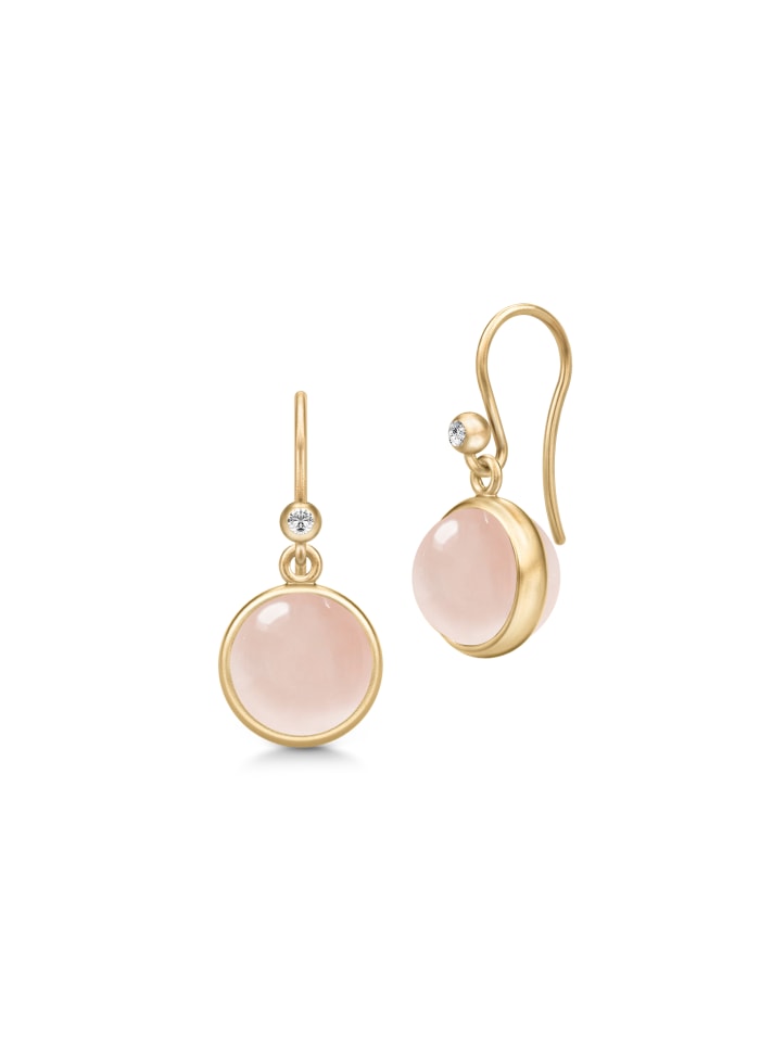Beskrivelse Julie Sandlau's ikoniske Prime øredobber er preget av en rund cabochon-kuttet krystall, innrammet av Julie Sandlau signaturgullbelte. Øredobben er håndlaget i 22 karat forgylt 925 sterling sølv og prydet med cubic zirconia. Disse hvite briljantskårne steinene skaper den perfekte kontrasten til varmen fra gullbelegget og de fargede krystallene. Den runde krystallen måler 10 mm i diameter. |