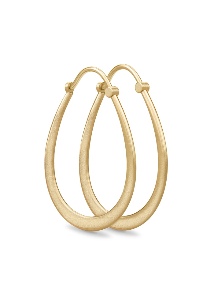Beskrivelse Vakre bøyleøredobber i en enkel dråpeformet look fra Julie Sandlaus Classic kolleksjon. Øredobbene er håndlaget i 22 karat forgylt 925 sterling sølv, og måler 25 x 34 mm. |